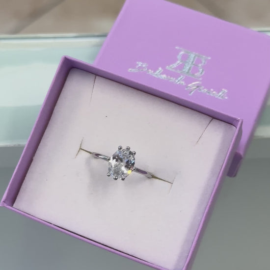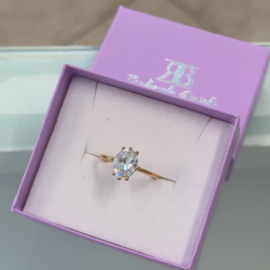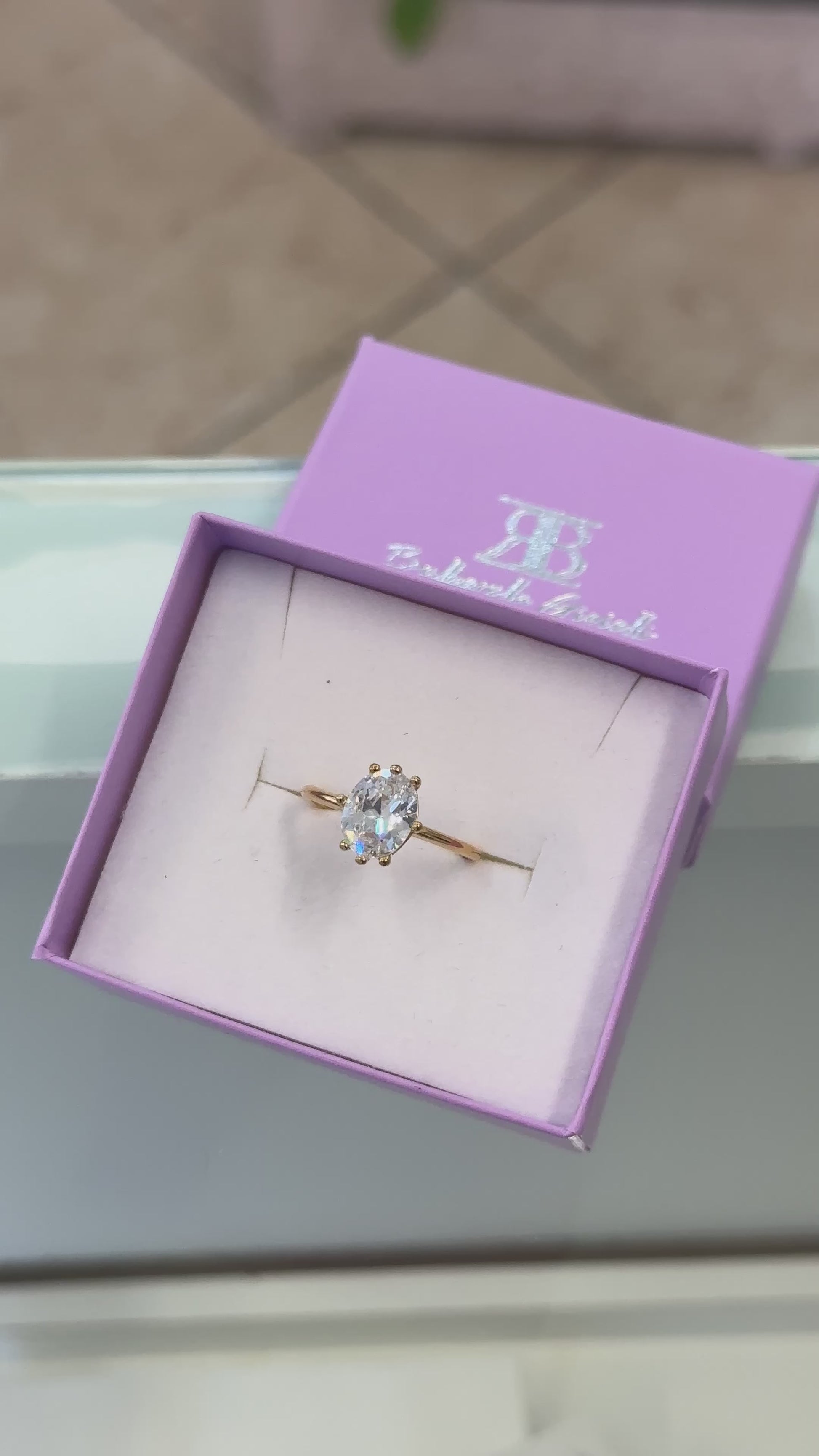 Delicado anillo simbólico para promesa con zirconia ovalada.