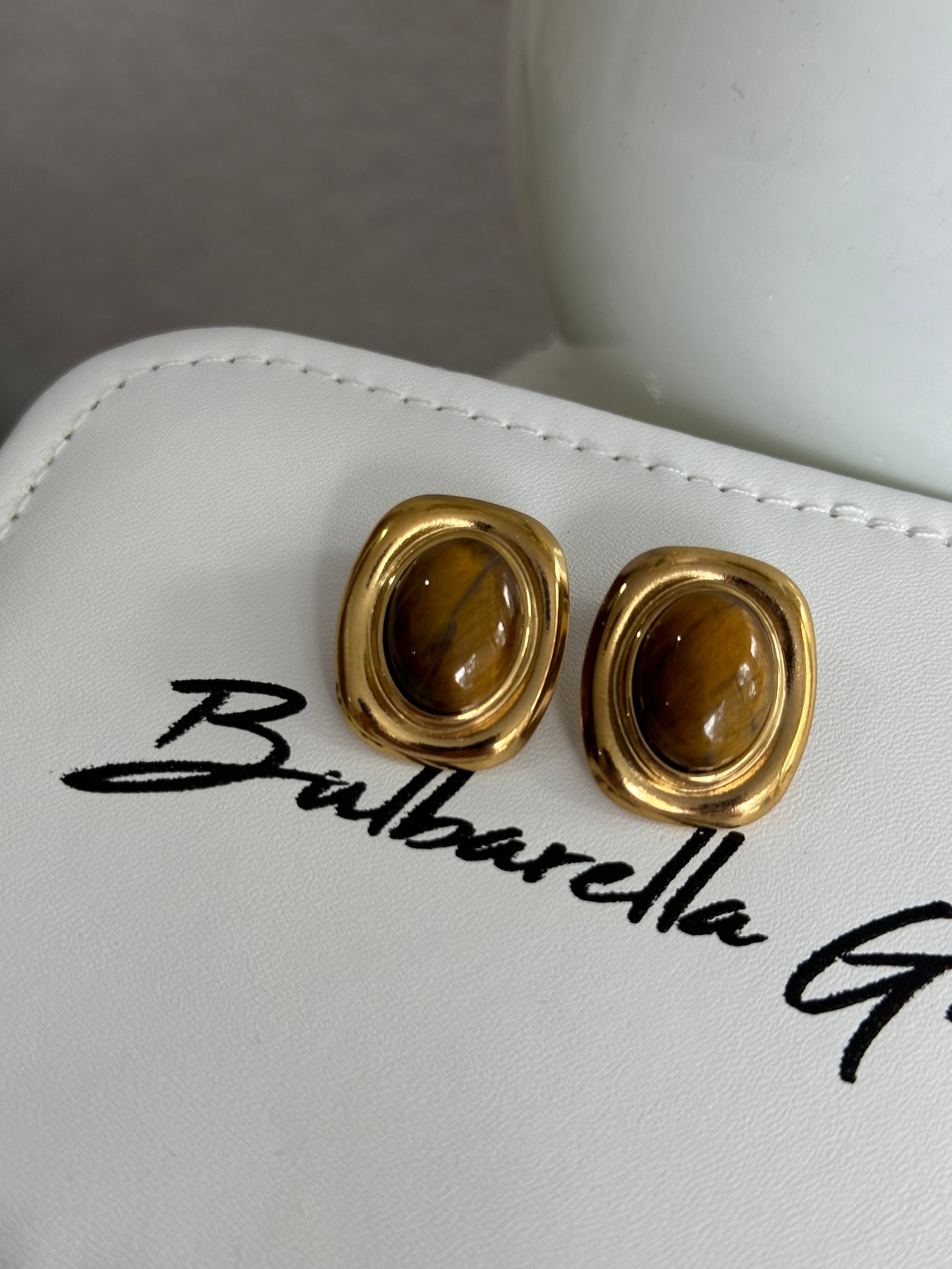 Arete elegante cuadrado mediano con piedra ojo de gato.