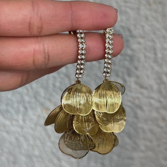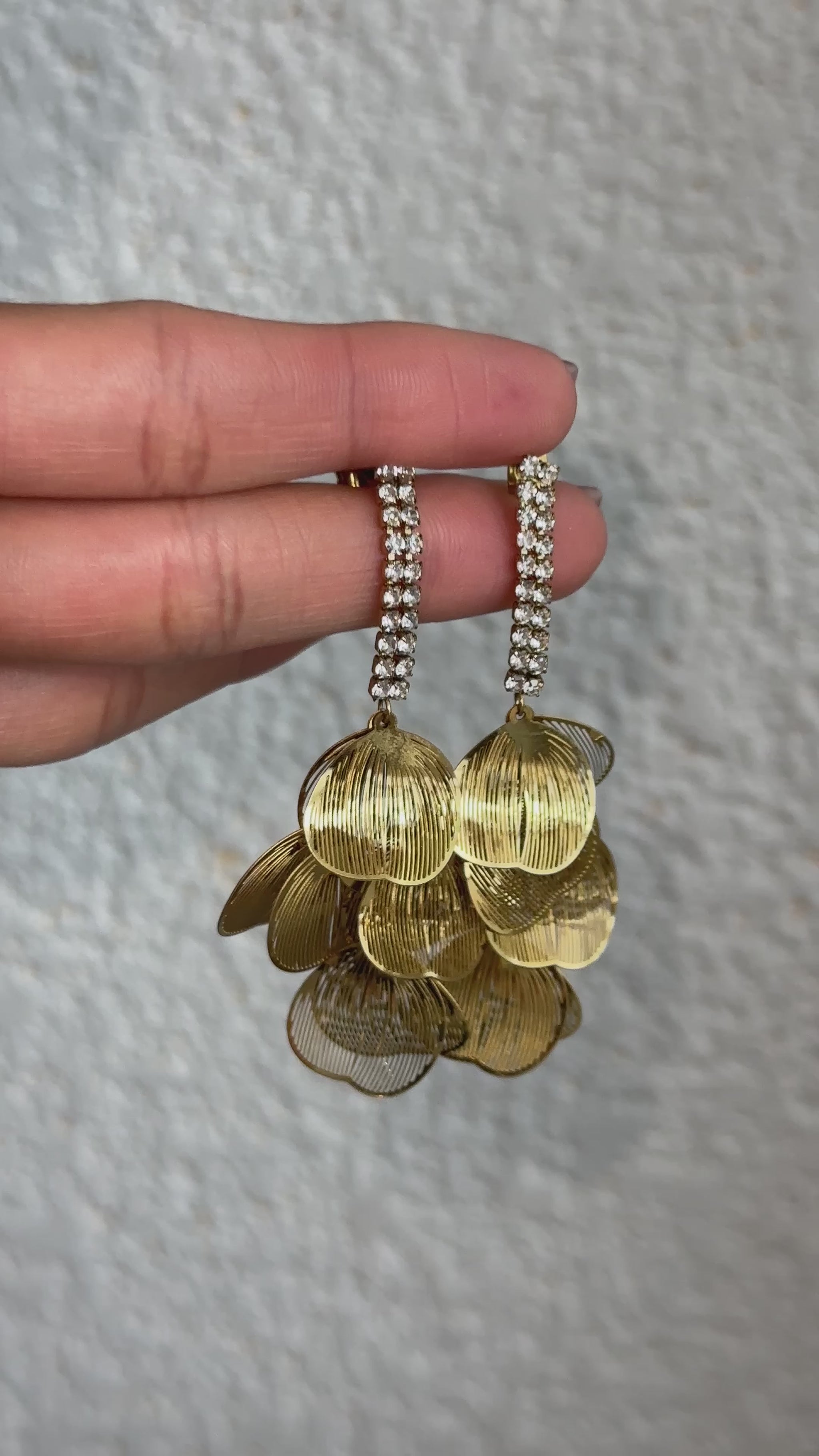 Arete para fiesta, ligeros y llamativos. Su diseño será el que llame la atención, cristales con unas hojas que simulan una flor. acero inoxidable.