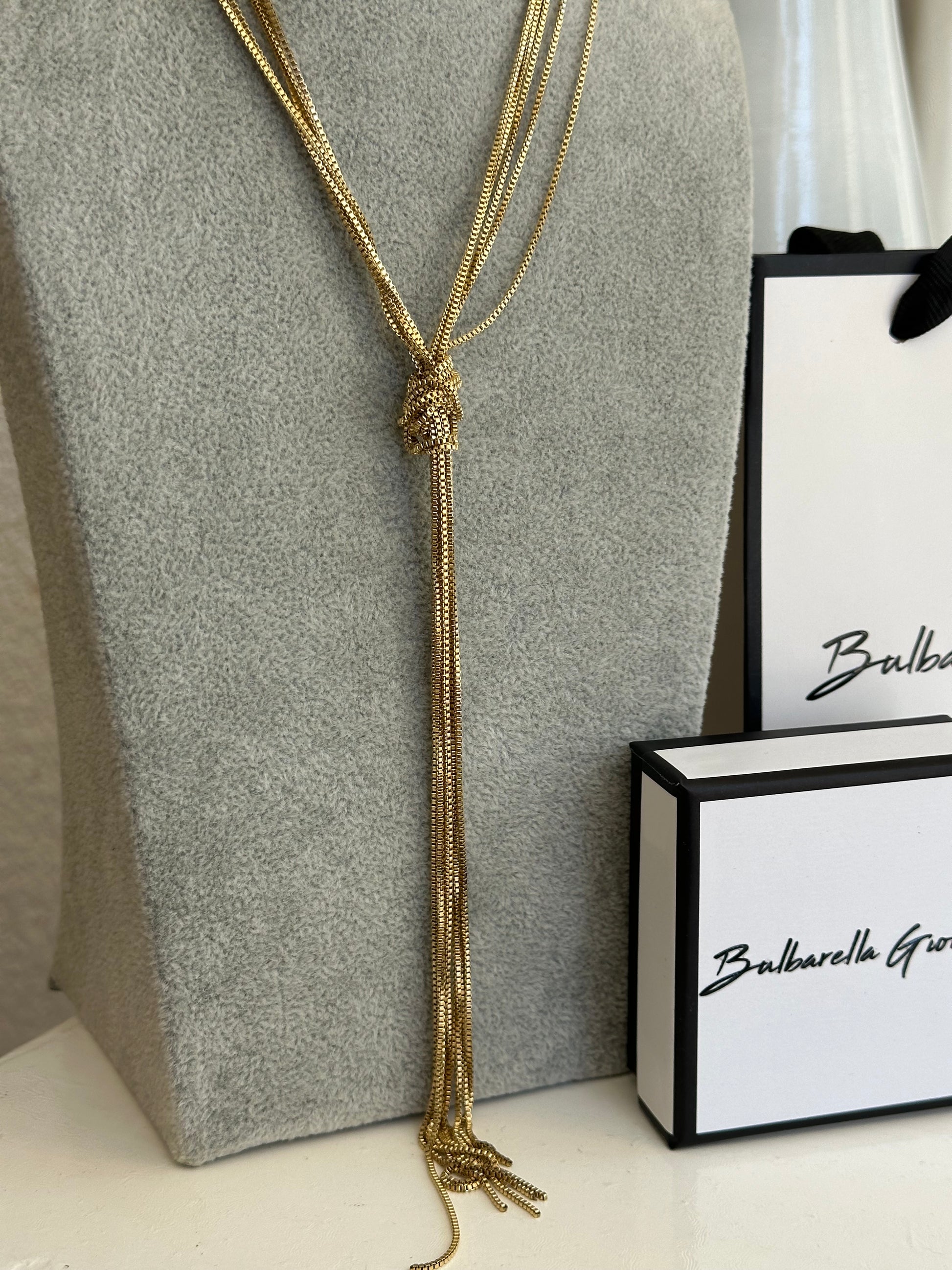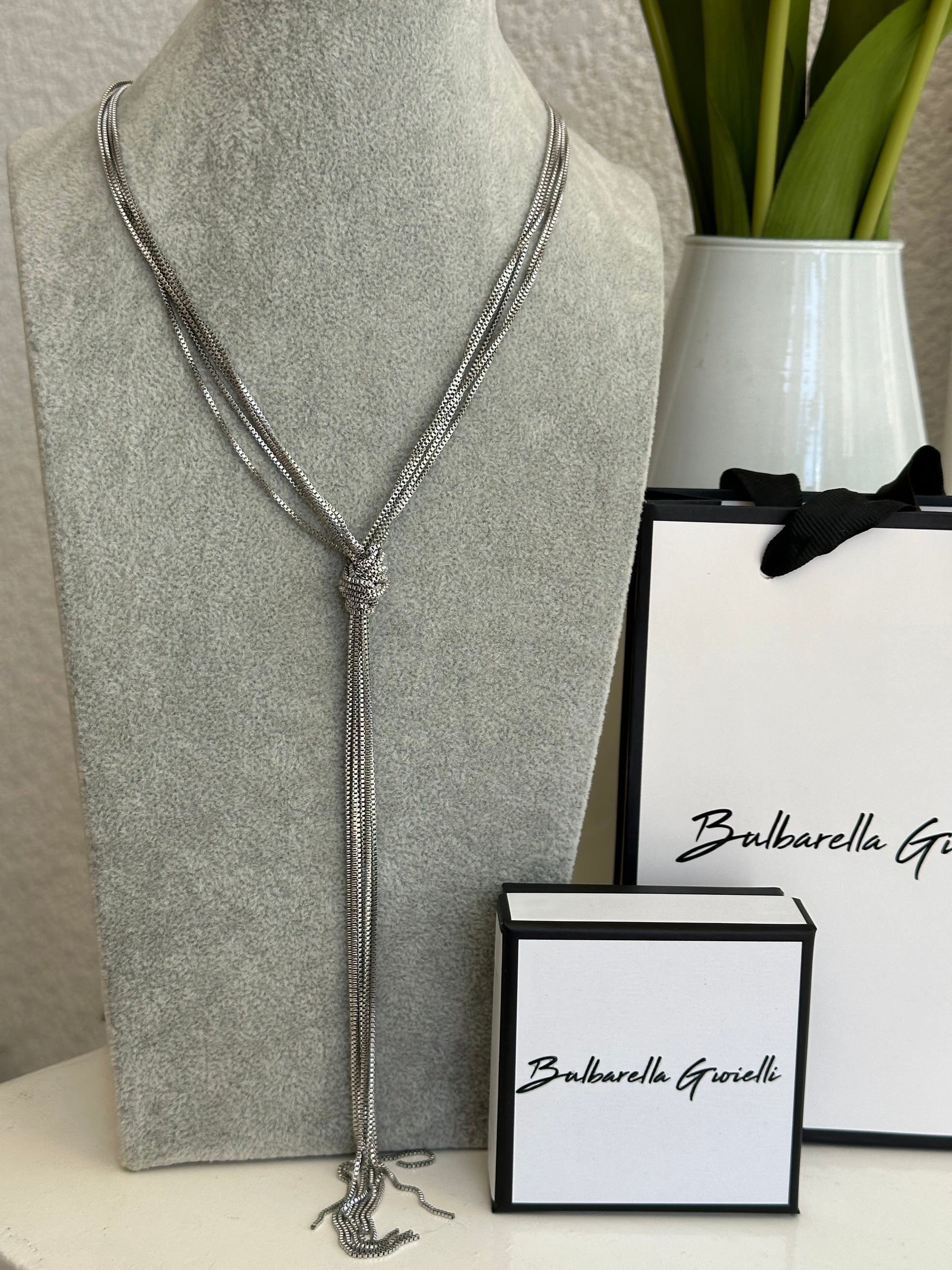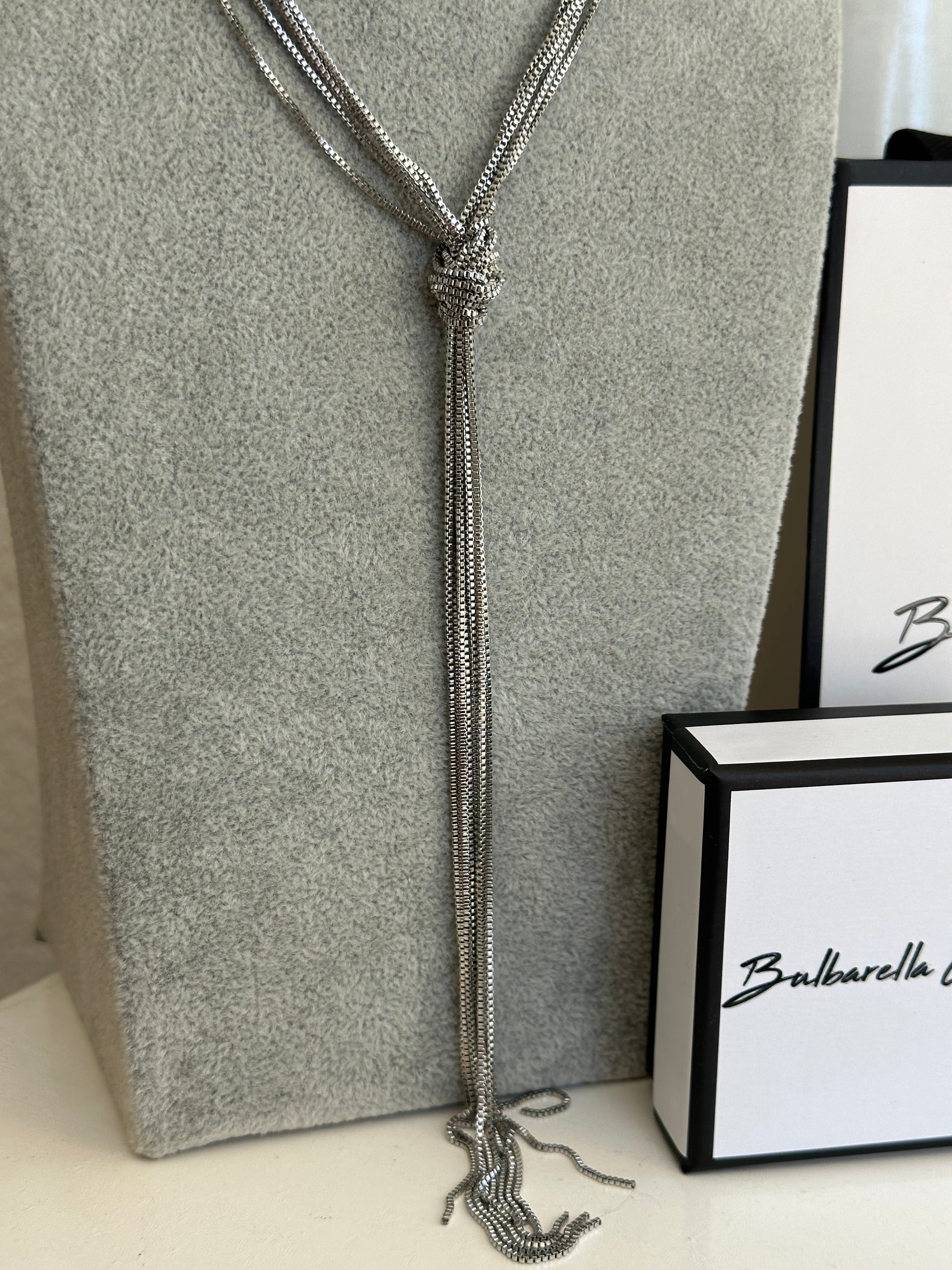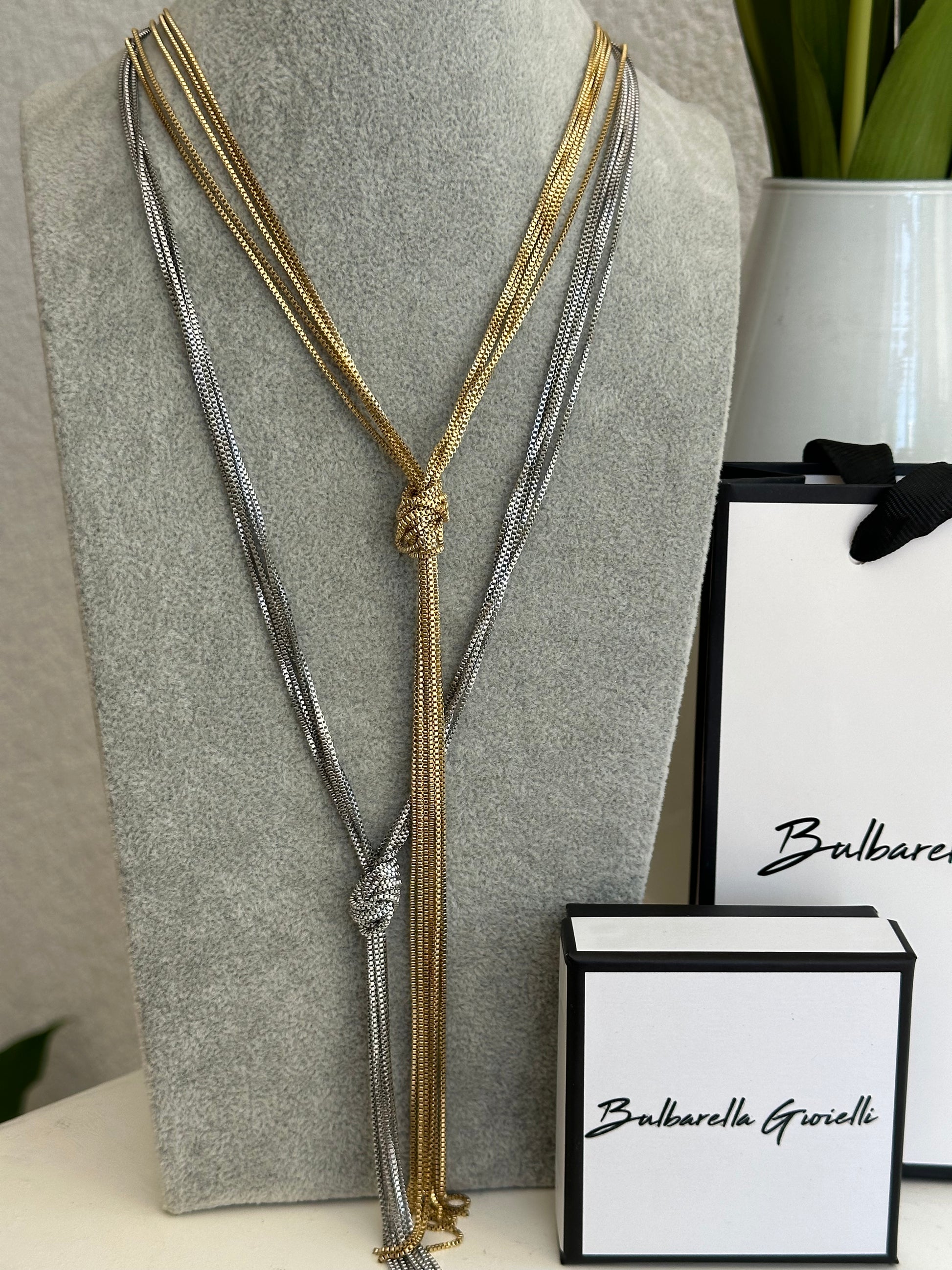 Collar estilo corbatín de muchas cadenitas creando un nudo, pieza de acero inoxidable resistente al agua.