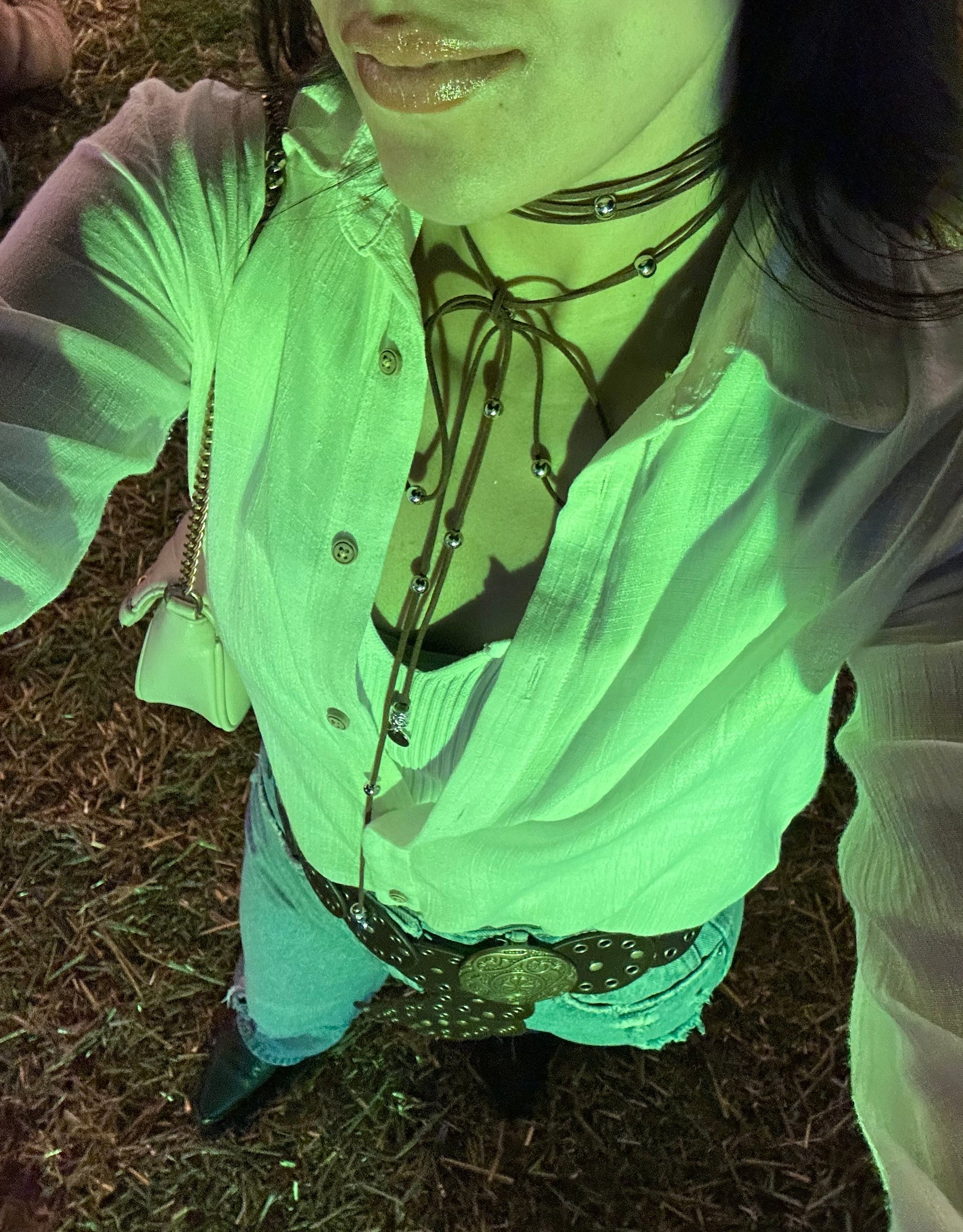 Collar tipo gamuza con cuencas plateadas de acero inoxidable. 220 cm de largo.