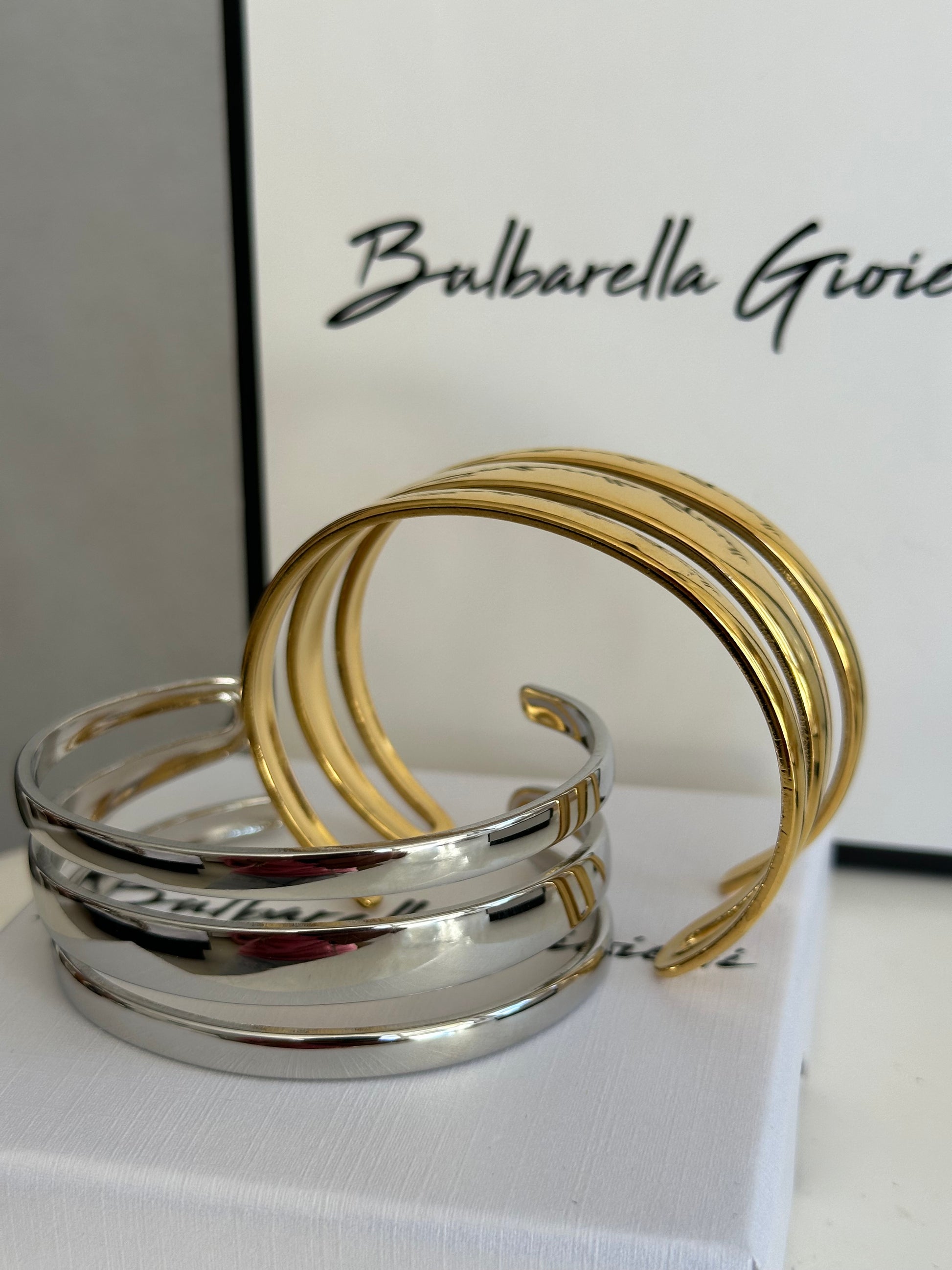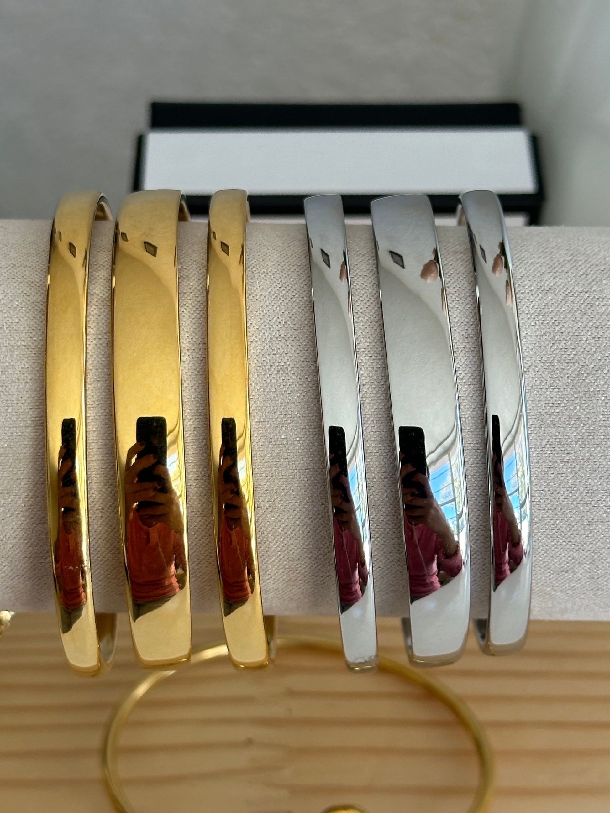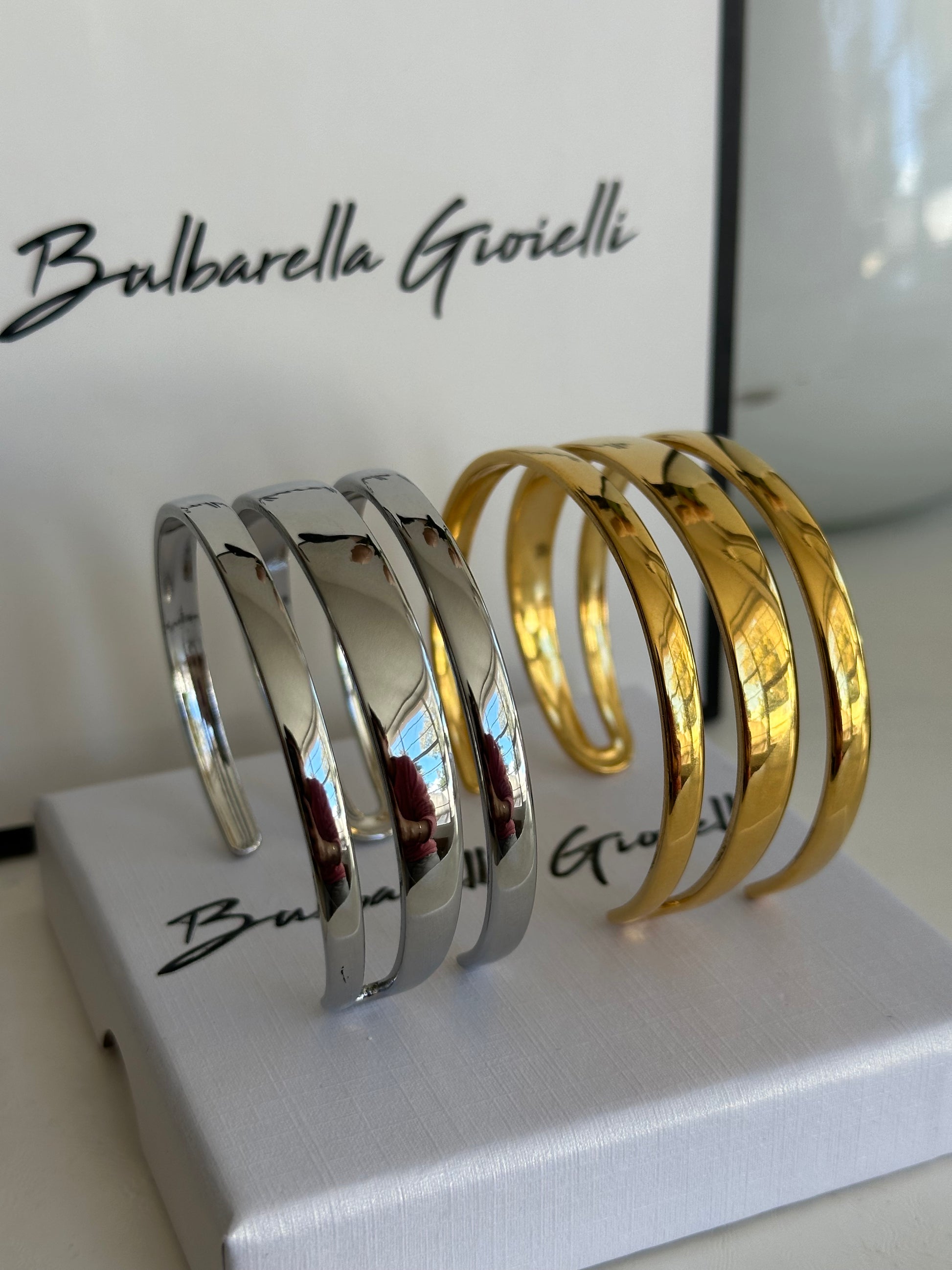 Pulso abierto ajustable de 3 líneas, hecho de acero inoxidable resistente al agua.